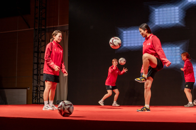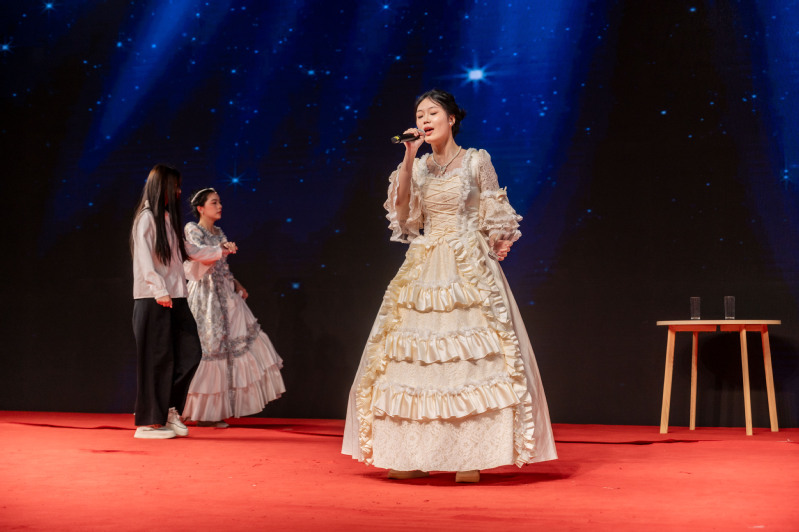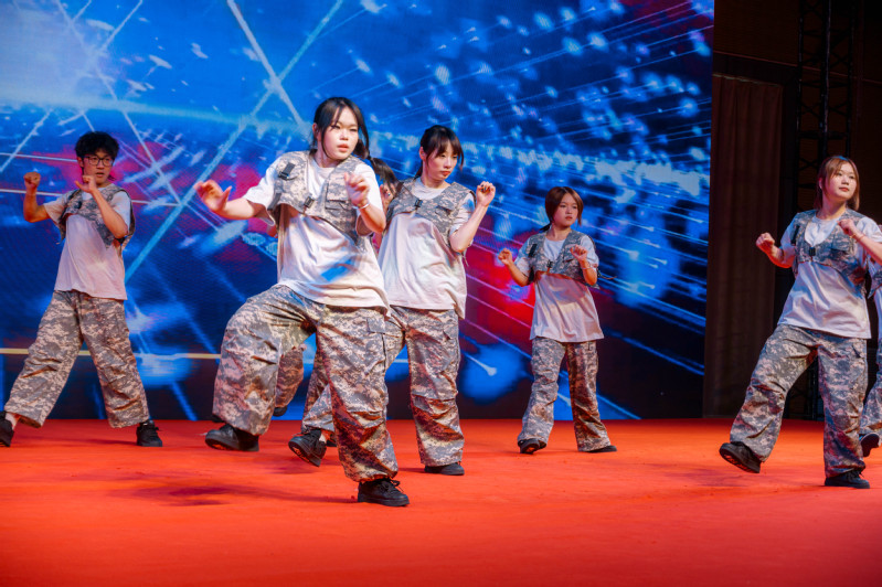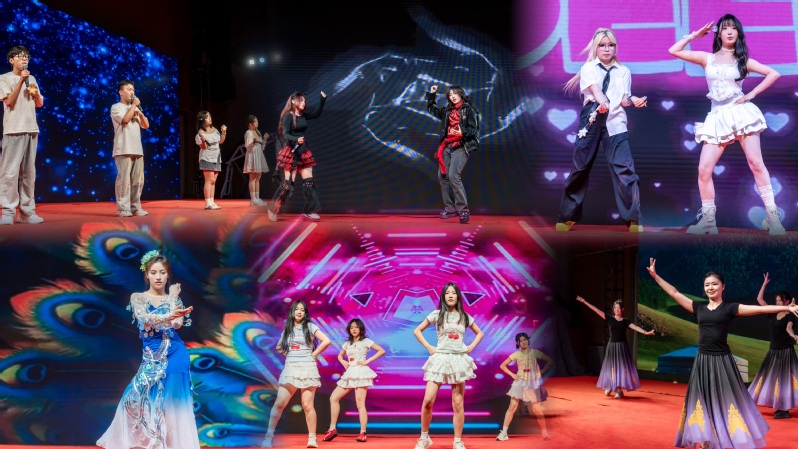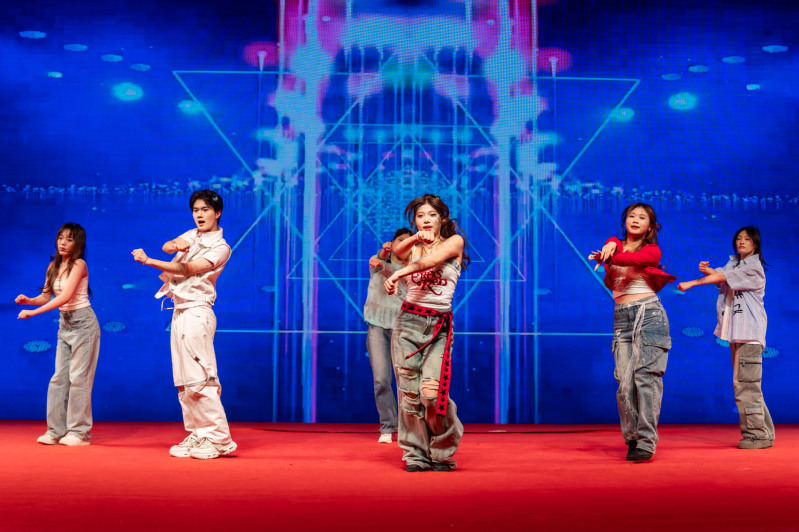 第二篇章:时代和鸣·梦想飞扬中,艺术表达再升级,时代主题更鲜明。鲲海话剧社、智能纺织与材料学院、创意设计学院等带来的舞蹈、现代舞与歌曲演绎,既有浪漫的艺术张力,又饱含青春的热血激情。服装与时尚设计学院、足球社、英语社的多元节目,通过不同艺术形式的碰撞,展现了各社团的创新活力与协作精神,现场观众沉浸于多元艺术交融的沉浸式体验中。