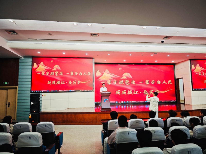 主题报告会上,新疆应用职业技术学院团委老师帕里哈乃·木塔力甫、校团委书记朱鹏、校团委副书记杨萍以及两校师生代表共计500余人共同参加活动。两位新疆学子深情分享《独库公路,用热血铸就的天山丰碑》与“七一勋章”获得者买买提江·吾买尔的先进事迹。现场掌声阵阵,滚烫的故事传递着新疆大地的坚韧底色与温情力量,引发强烈共鸣,成为青春与青春的真挚对话、心灵与心灵的隔空呼应。