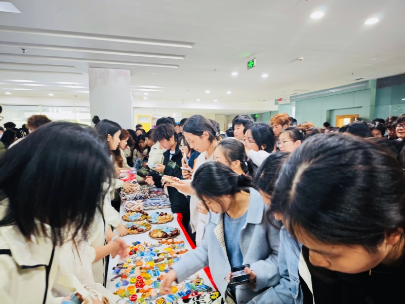 主题报告会后,新应职实践团成员和我校志愿者们共同搭建了大美新疆、魅力伊犁特色文化展。缀满丝路记忆的民族服饰刺绣、风味浓郁的特色干果、创意十足的艾德莱斯丝绸文创产品摆放整齐,一方小天地化作浓缩新疆魅力的微缩画卷,静静等候两地青年的文化邂逅。
