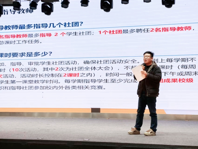 会上,聂洋围绕社团工作全流程管理,详细解读从OA报备到年审的各项制度规定,明晰社团运营规范要求,让各社团负责人对社团管理细则形成全面、深入的认识,为新学期社团工作有序开展筑牢基础。