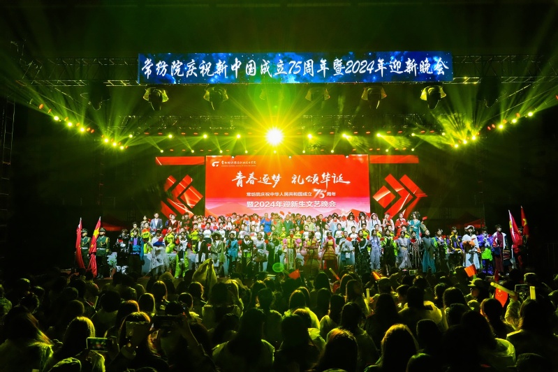 青春逐梦,礼颂华诞。本次文艺汇演献礼中华人民共和国75周年华诞,唱响了时代主旋律,讴歌伟大的中国共产党,展现了一代代常纺人接续奋斗的精神风貌,坚定了全体师生与祖国同心、与时代同向、与学校同行的决心和信心。迎新晚会不仅是一份送给2024级新生的视听盛宴、迎新厚礼,更是一堂主题鲜明、内涵丰富、形式生动的“大思政课”。学校精心组织和设计迎新晚会,融合原创话剧、舞蹈等丰富形式,集家国情怀、爱校荣校、审美素养提升于一体,将时代主题与大学精神紧密结合,把思政教育与文体活动深度融合,引导新生扣好“人生第一粒扣子”,从入校起就树立德智体美劳全面发展的目标,锤炼过硬本领、勇担时代重任,奋力书写为中国式现代化挺膺担当的青春篇章。