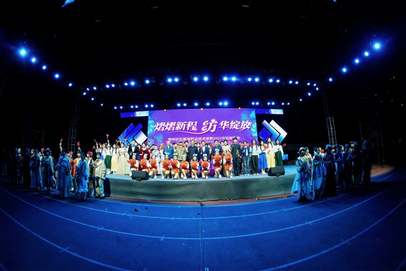 晚会在大学生艺术团《共圆中国梦》的歌舞中圆满落幕,激昂的旋律将爱国情怀与时代使命深深烙印在师生心中。此次迎新晚会不仅是送给2025级新生的“开学厚礼”,更是一堂浸润心灵、培根铸魂的“大思政课”。学校以舞台为讲台、以节目为教材,将家国情怀的温度、传统文化的厚度、专业特色的精度与“进德 立业 敏学 笃行”的育人目标深度融合,在新生心中播下理想的种子、厚植担当的底色,引导他们扣好“人生第一粒扣子”,激励全体2025级新生在常州纺院的沃土上扎根成长,为强国建设、民族复兴的伟大事业贡献青春力量。