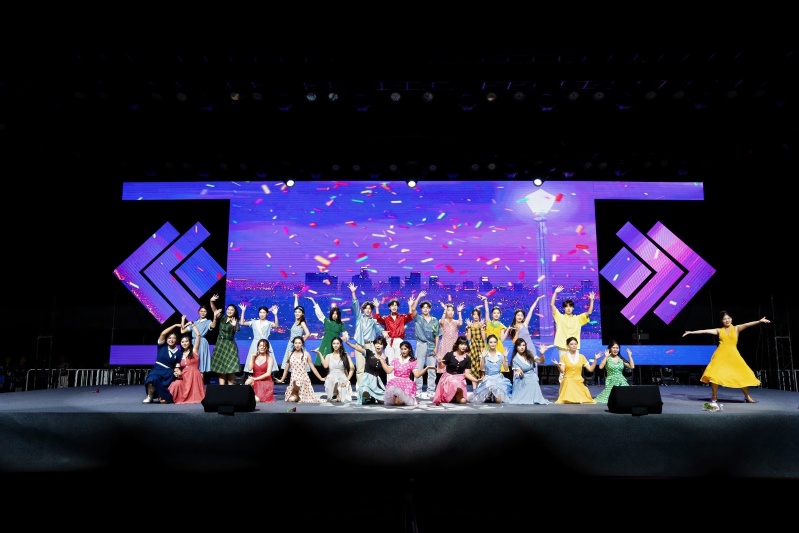 第三篇章“绽放·锦绣远征”将晚会推向高潮。军训教官《擒敌拳》动作刚劲有力、整齐划一,展现钢铁意志;留学生与新生同台演绎《茉莉花》默契开嗓,彰显学校开放包容的国际化办学氛围;传统武术社《常纺精武门》在刚柔并济间将中华武术的精气神传递给在场每一个人,尽显自强不息的尚武精神;鲲海话剧社带来的《爱乐之城》选段,用细腻的情感表达引发全场观众强烈共鸣。