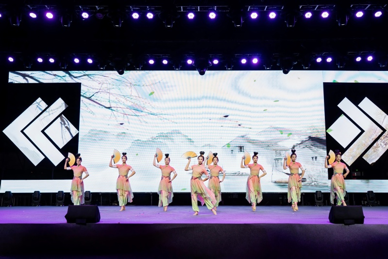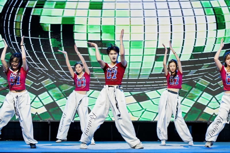 第二篇章“织梦·华彩盈能”精彩继续,畅想音乐社歌曲串烧覆盖多元曲风,用音符串联起丰富的情感共鸣;校大学生艺术团古典舞《醉春风》以扇为媒,舞者身姿轻盈如燕,演绎江南风韵;服装与时尚设计学院联合X-show模特社呈现的时装秀《新序・风尚》备受瞩目,所有服装均由学生自主设计制作,尽显学校育人实效。校啦啦操队凭借省级获奖水准的《第一梯队》,用蓬勃向上的姿态展现出常纺青年敢闯敢拼的朝气与风采。